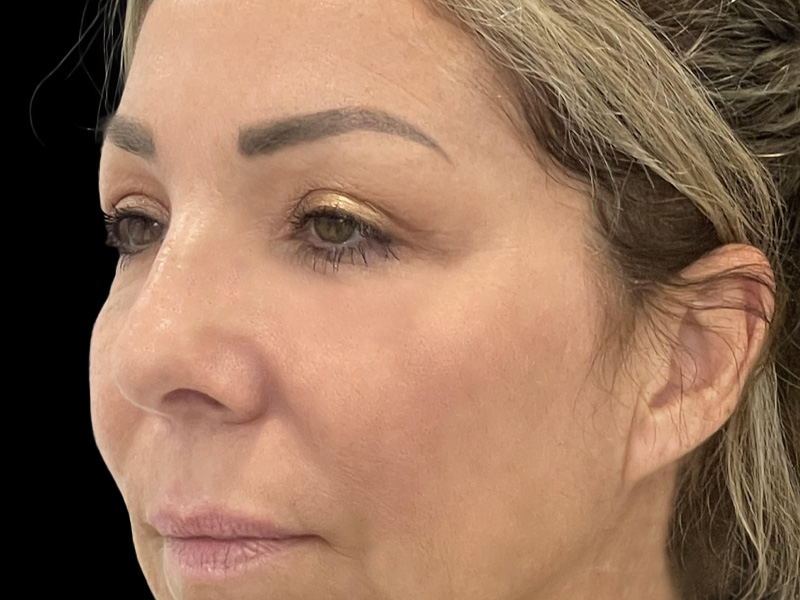 This beautiful 52 year old female was bothered by the excess loose skin and how when she smiled her lower eyelids bunch. She also was interested in tightening her lower face area.