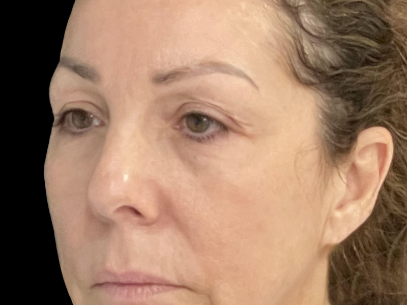 This lively 53 year old female wanted to address the heaviness and hooding of her eyelids. She decided to proceed with an upper blepharoplasty, and is very