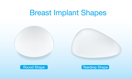 Implants come in round and teardrop shapes. Round implants are the same height all around when placed flat on a table. They can be smooth or textured implants, and they are frequently used for women who want more upper pole fullness.